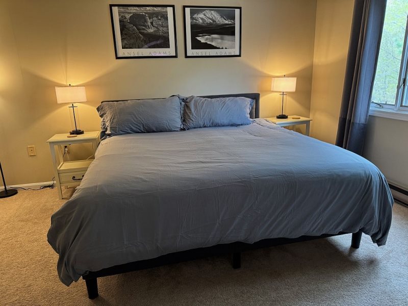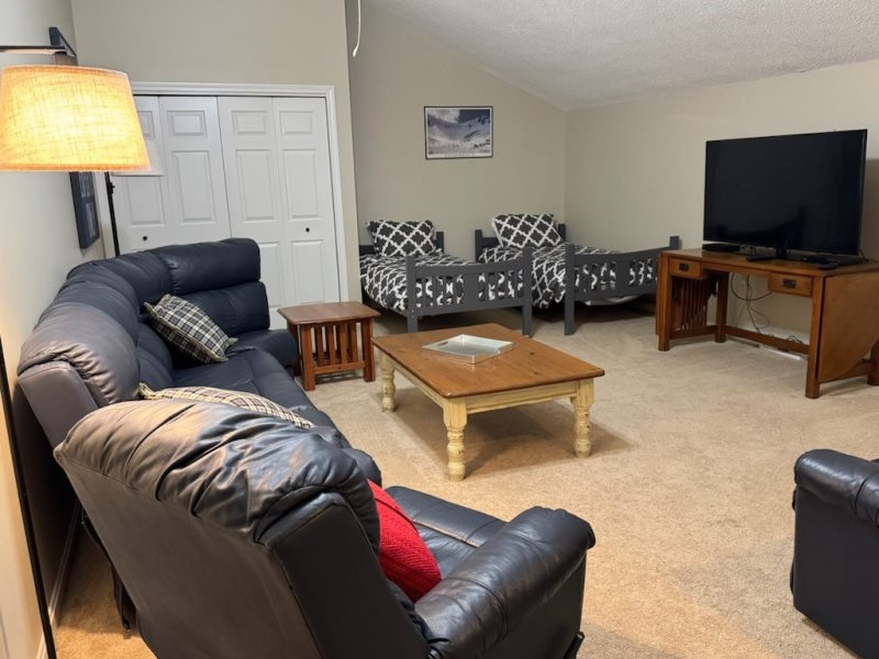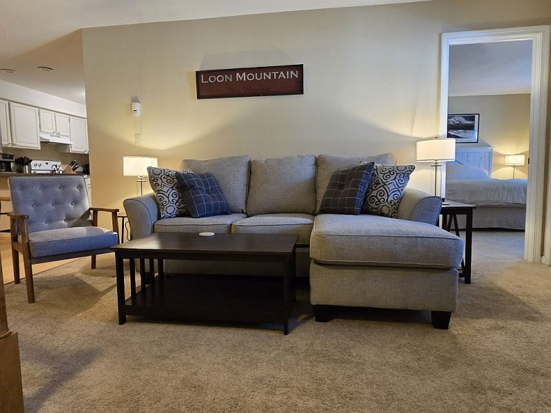 3 Bedroom multi level condominium with dedicated WiFi, 3rd floor rear with balcony off living room and deck upstairs in loft area. Master bedroom offers King bed, TV, DVD, full bath, and walk-in closet. Guest bedroom offers King bed, TV, DVD, full bath and walk-in closet. Upstairs open area features Queen bed and 3 Twin beds, sofa sitting area,TV, DVD and A/C, full bath, large closet, and private deck with mountain views. Fully applianced and utensiled kitchen with breakfast bar and stools; dining area with table and chairs. Living room area has TV, thermostatically controlled cozy gas log fireplace and balcony. As our guests, you will have full access to the in-house fitness center which offers an indoor hot tub, indoor heated pool, exercise equipment and game tables, and outdoor seasonal hot tub and pool. Onsite seasonal charcoal grilling/picnic area (gas grills prohibited). Each unit offers high-speed WiFi and free local calls.The Nordic Inn is convenient to all local and manmade attractions the NH White Mountains have to offer including Franconia Notch State Park, Cannon Ski Area, Loon Mt. Ski Area, Pemigewasset River for kayaking and swimming, Echo Lake State Beach, Cross Country Ski Trails and Snowmobile Trails.
